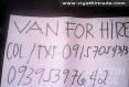 van for hire, col 09395397642 or 09157054313