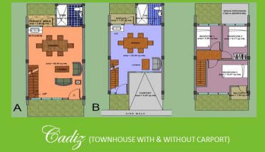 Cadiz 2-Storey Townhouse (with or without Car Garage) Lot Area: 36 sqm to 85 sqm Floor Area: 64.09 sqm 3 Bedrooms, 1 Toilet & Bath 1 Car Garage, Balcony Living/ Dining/ Kitchen & Service Area Price: Php 1,526,000.00 |